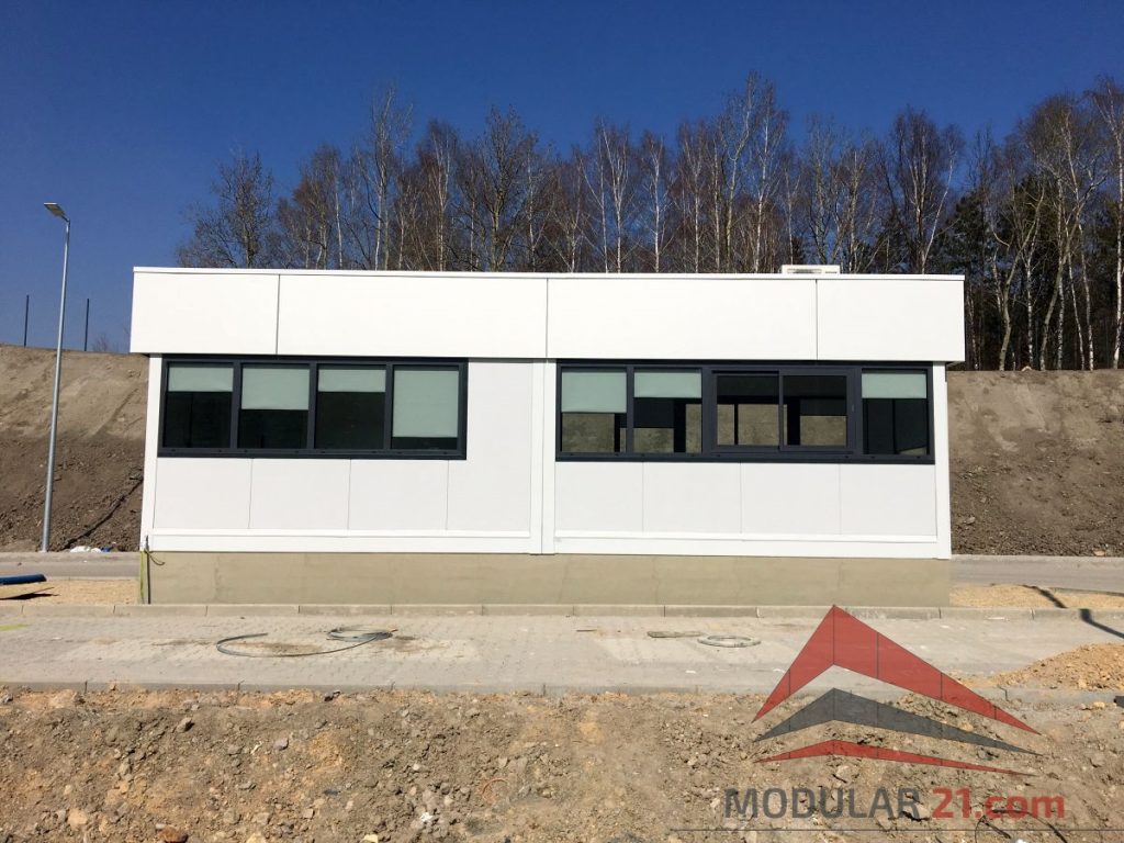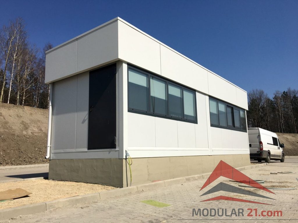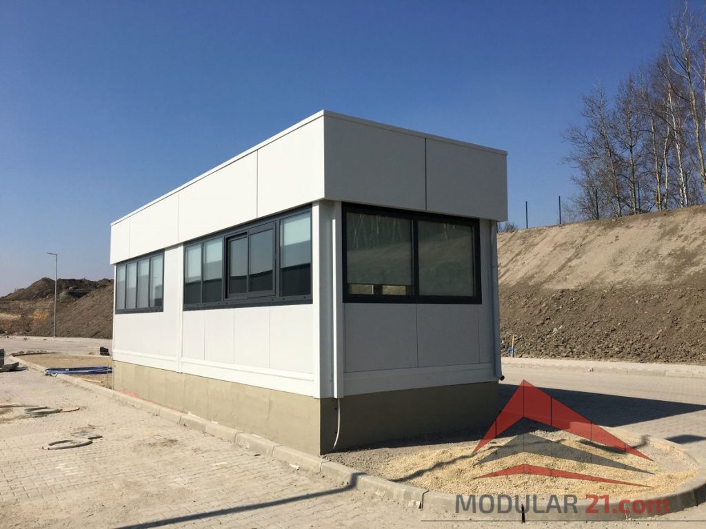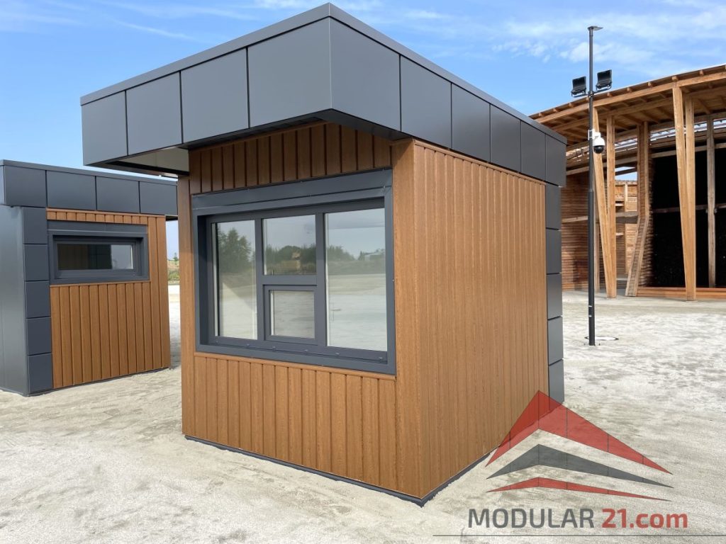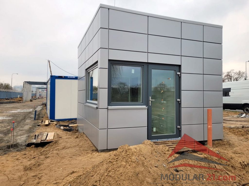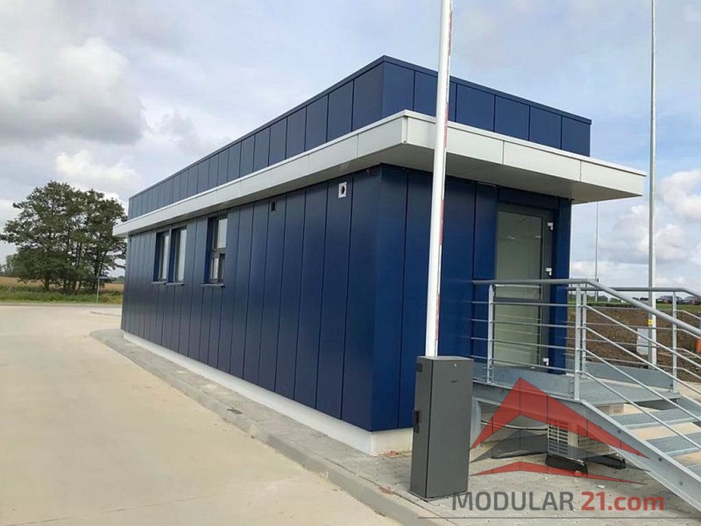 Ein modernes Pförtnerhaus kann optisch perfekt an Hallen, Bürogebäude oder Verwaltungsgebäude angepasst werden.