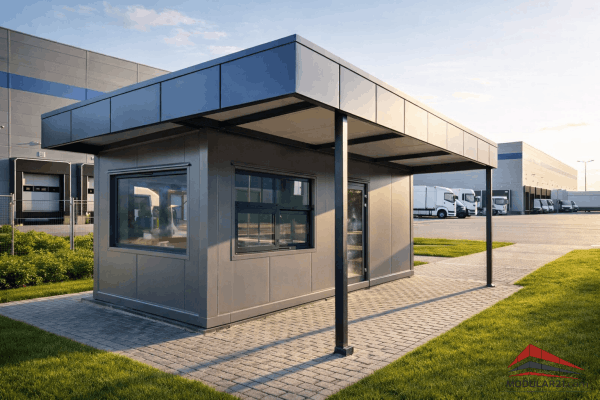 Ein Pförtnerhaus ist der erste Kontaktpunkt Ihres Unternehmens. Es muss funktional, sicher und ganzjährig einsatzbereit sein. Konstruktionen in Leichtbauweise mit hochwertigen Sandwichpaneelen erfüllen genau diese Anforderungen.