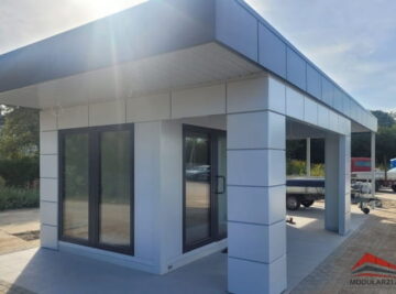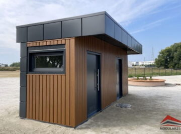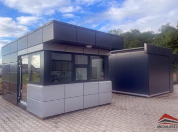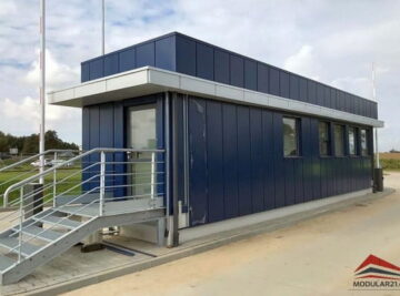 Portiernia modułowa 7×3 m z zadaszeniem – nowoczesna stróżówka dla inwestycji przemysłowych