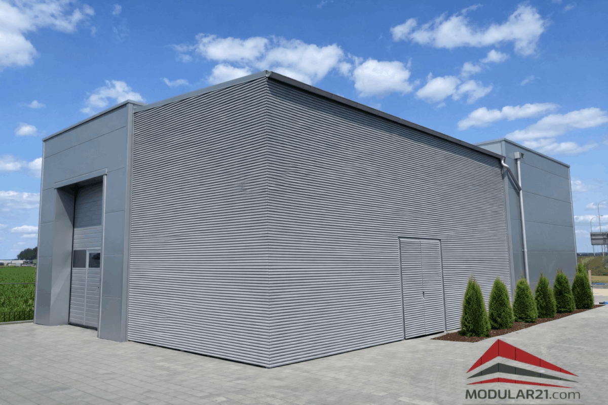 Część magazynowa oraz zadaszenie zostały wykończone nowoczesnymi lamelami elewacyjnymi w stylu loftowym.