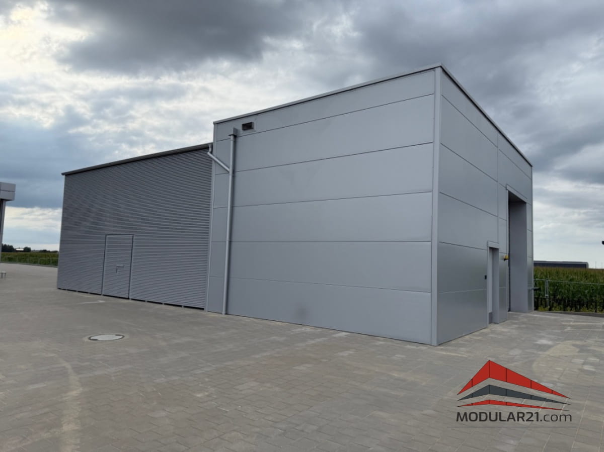 Połączenie przestrzeni warsztatowej i magazynowej w jednym obiekcie pozwala na optymalną organizację pracy oraz wygodne zarządzanie zapleczem technicznym.