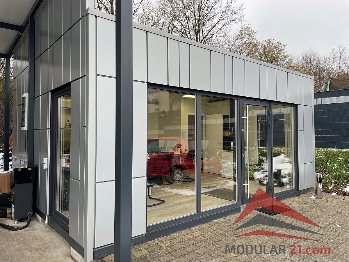 Dzięki technologii modułowej kontener może być ustawiony dokładnie tam, gdzie generowany jest ruch klientów – przy drodze, na placu sprzedaży czy przy inwestycji.