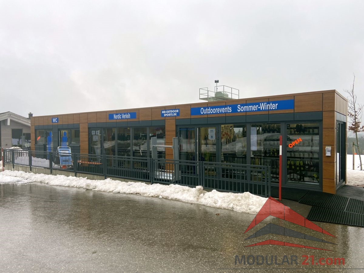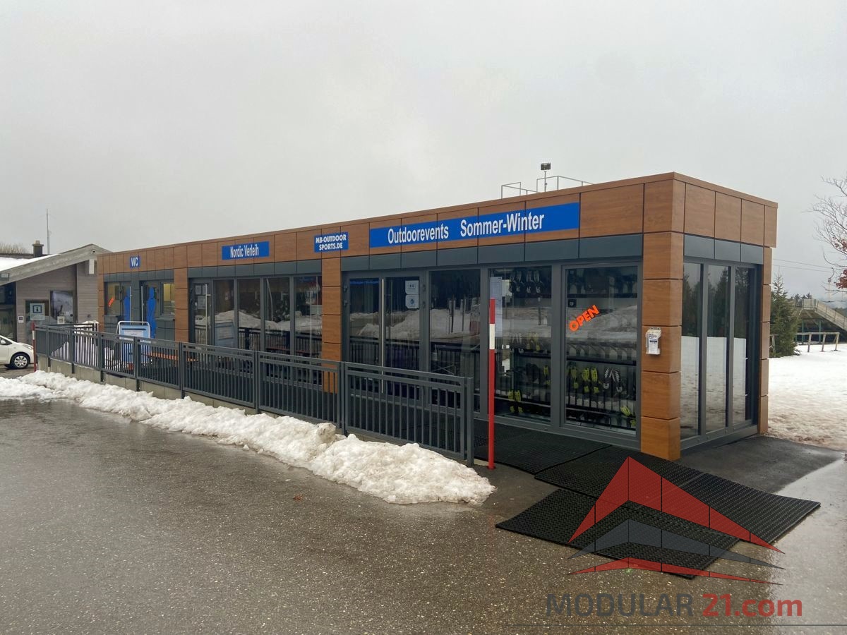Der realisierte Dienstleistungscontainer für Skiverleih und Skiwerkstatt ist eine praktische und moderne Lösung für Wintersportgebiete. Dank der modularen Bauweise konnte der Container schnell umgesetzt und direkt vor Ort eingesetzt werden. Er bietet ausreichend Platz für Kundenservice, Skiausgabe sowie Service- und Wartungsbereiche und sorgt für einen reibungslosen Ablauf im täglichen Betrieb.